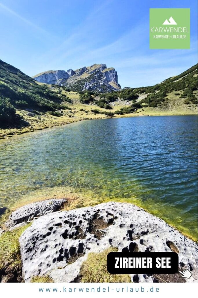 5. Ankunft am Zireiner See: Nach einer Wanderung durch Latschen erreicht man den Zireiner See, der mit seiner klaren Bergkulisse beeindruckt.